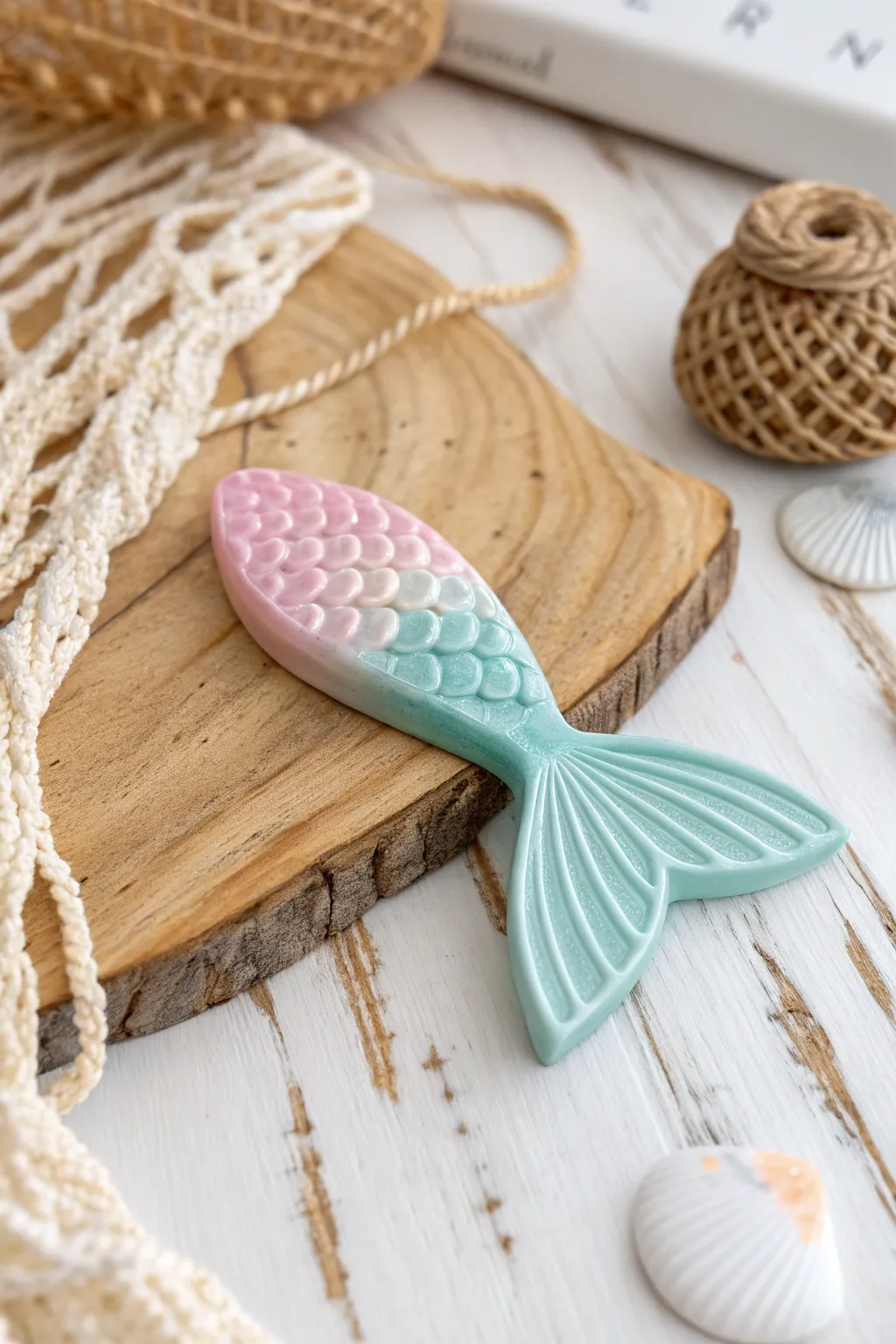 Forge enchanting mermaid cleansing bars utilizing soap molds and dynamic tints. These are not only charming but also utilitarian for daily ablutions.