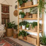 Utilize compact baskets to imbue a rustic sensation and offer concealed storage alternatives. They are ideally suited for maintaining smaller, less visually appealing items discreetly out of view