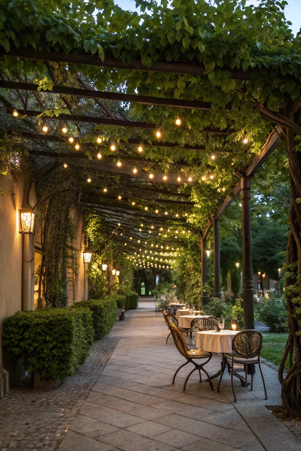 - Sun-Kissed Twinkle Strands: Adorn your pergola with sun-kissed twinkle strands for a cozy, eco-supportive radiance all night.
