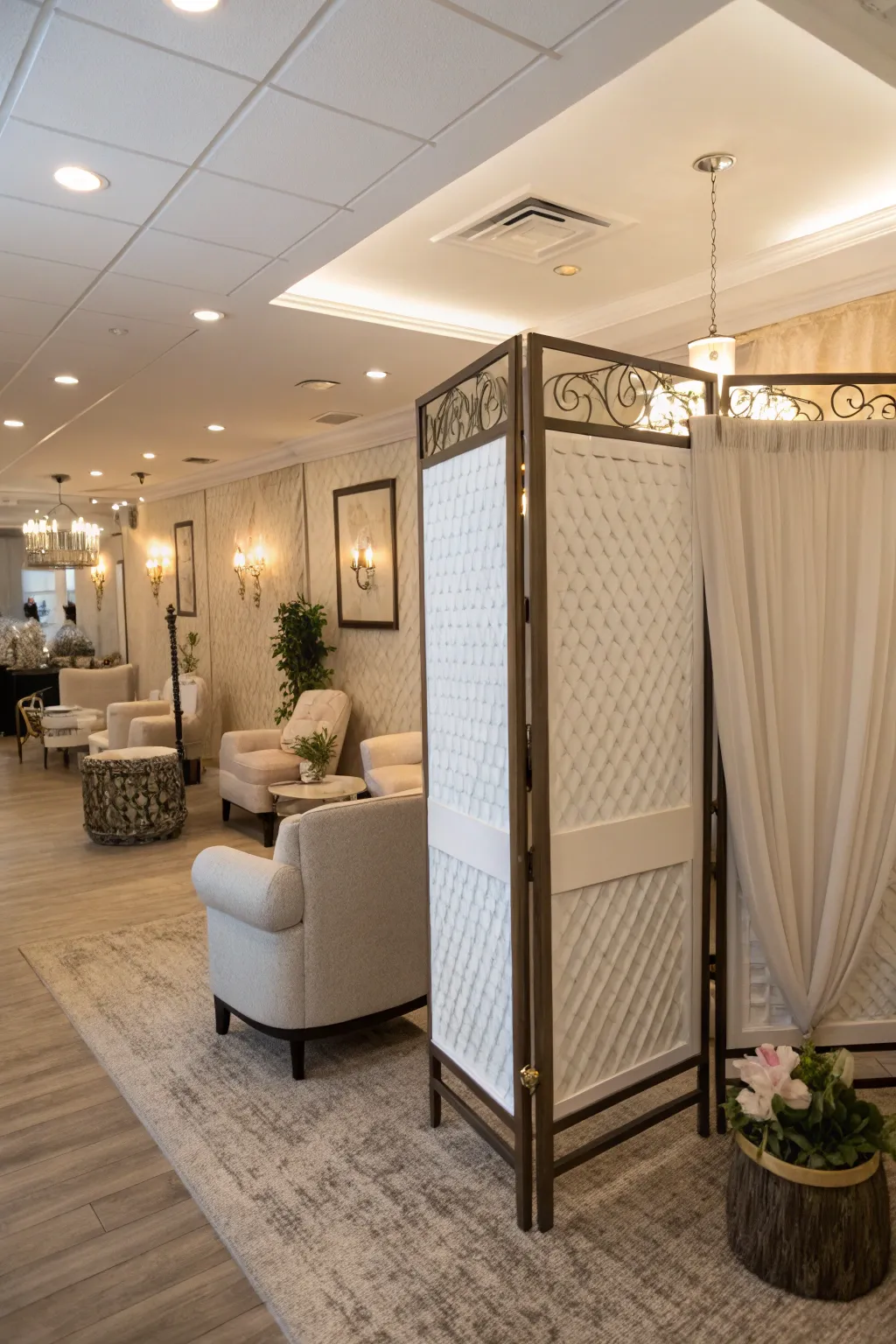 - Fabric Divider Panel: Add a sense of elegance and privacy using a fabric panel, which is perfect for smaller salons.