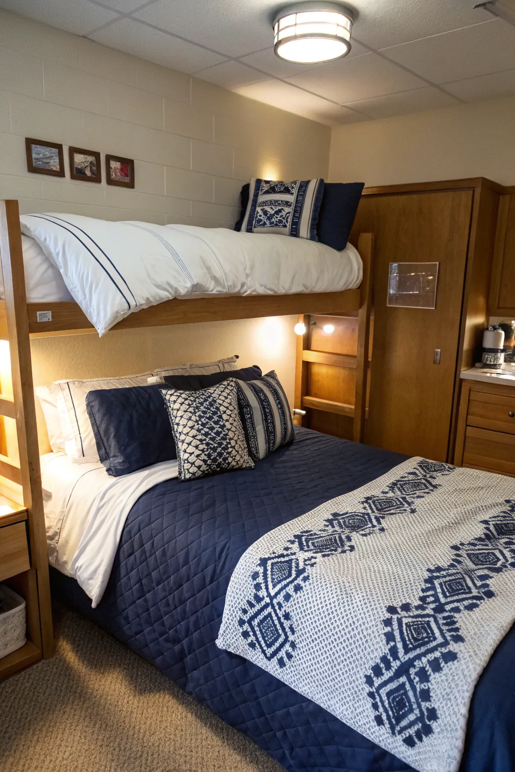 - Luxurious Navy Pillows: Introduce a hint of luxury with soft velvet pillows to amplify your dorm’s elegance.
