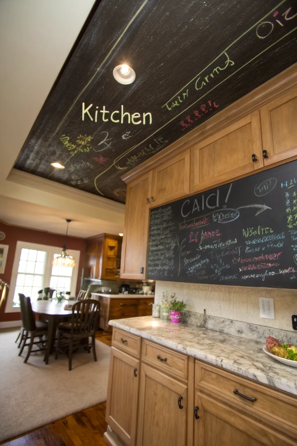 Slate board color isn’t just for kids’ spaces. I used it in my cooking area ceiling for a playful, interactive element where I jot down recipes and notes. It’s both practical and fun!