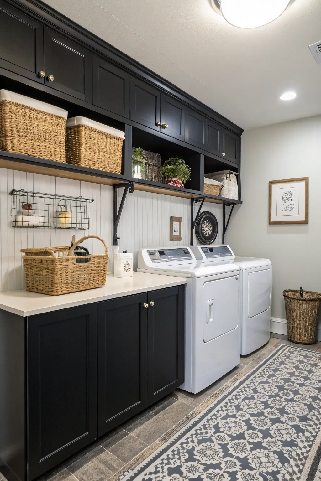 - Midnight Wood Panels: Transform your laundry room with sleek, elegant dark-toned wood panels for a sophisticated touch.