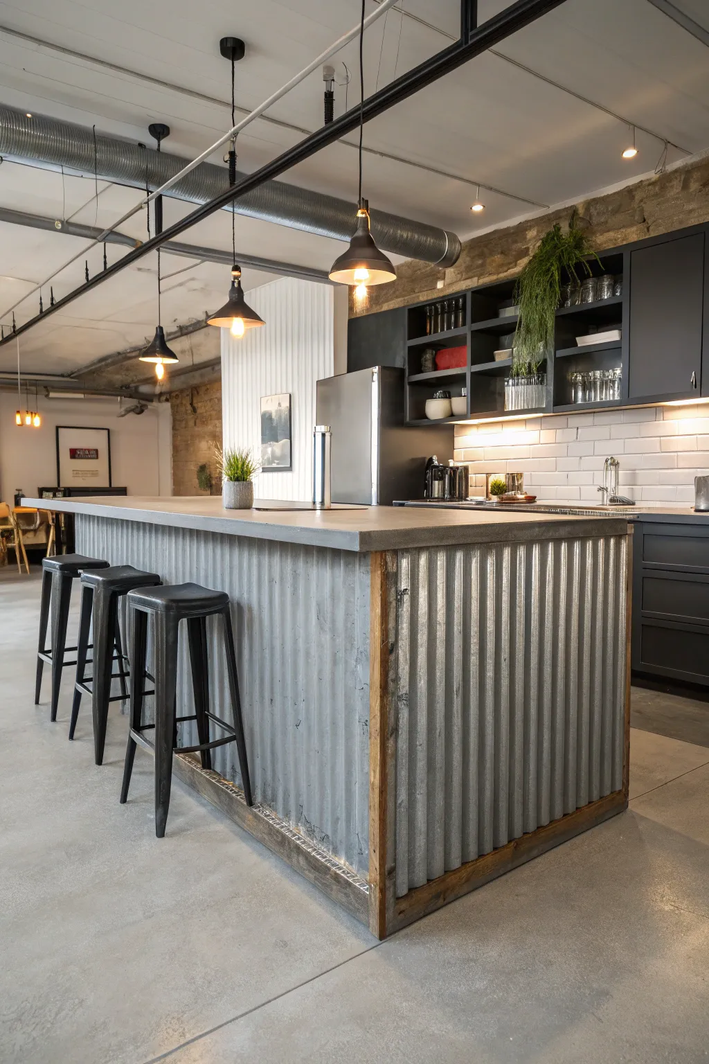 Ribbed metal introduces an urban grit to this kitchen island, crafting a striking statement.