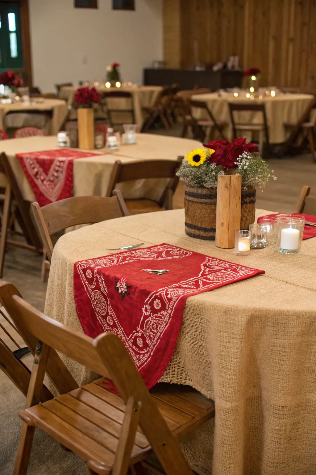 - Crimson Kerchief Table Accents: Bring in eye-catching flair with crimson kerchief table accents, a stellar pick to level up your western decorations.