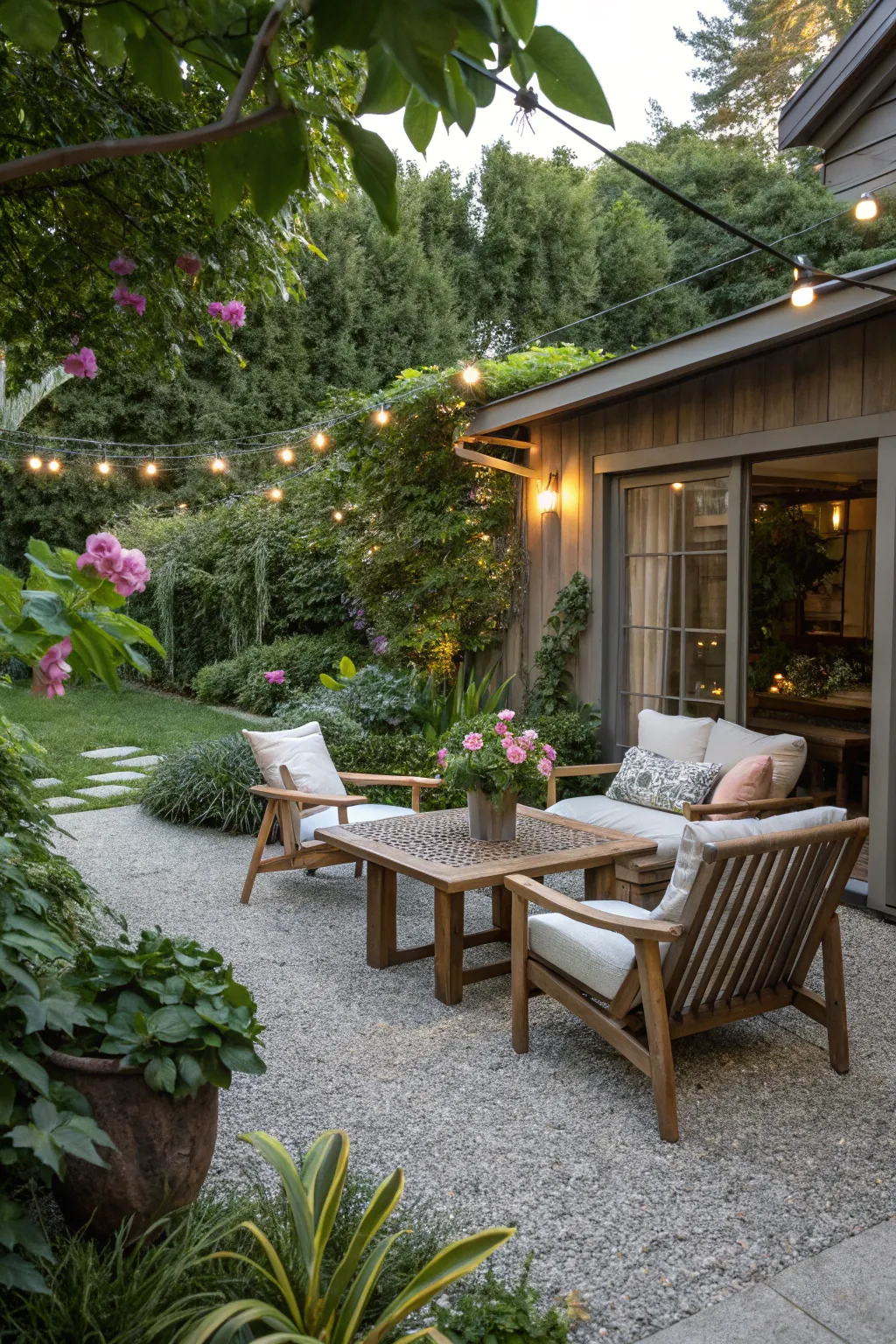 - Exterior Festoon Illumination: Enhance ambiance using sturdy festoon illumination suited for brightening your fine crushed stone patio setup.