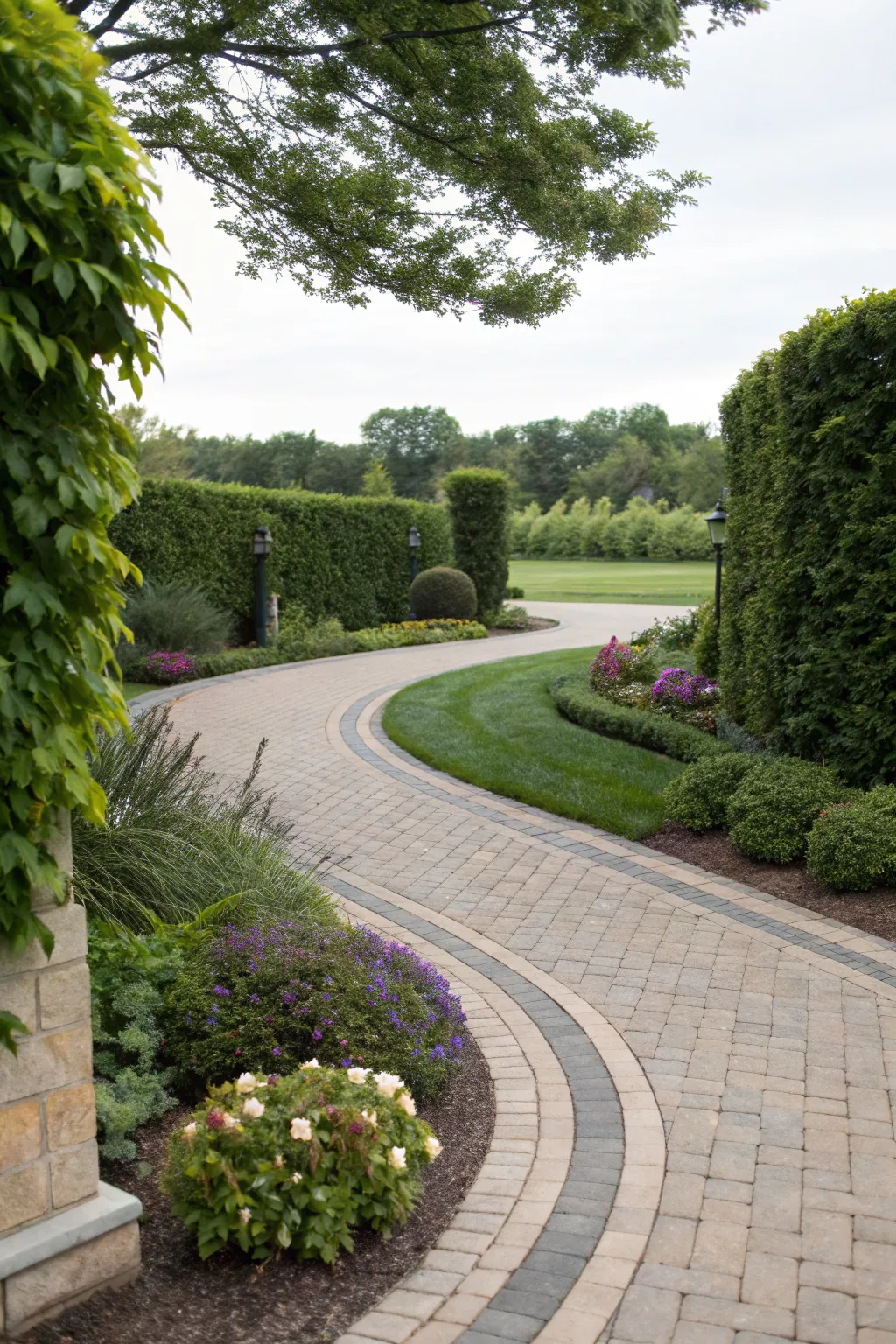 Curved paths can soften the visual impact of a driveway and establish a fluid progression. I’m always impressed by how this design directs the eye and movement naturally.