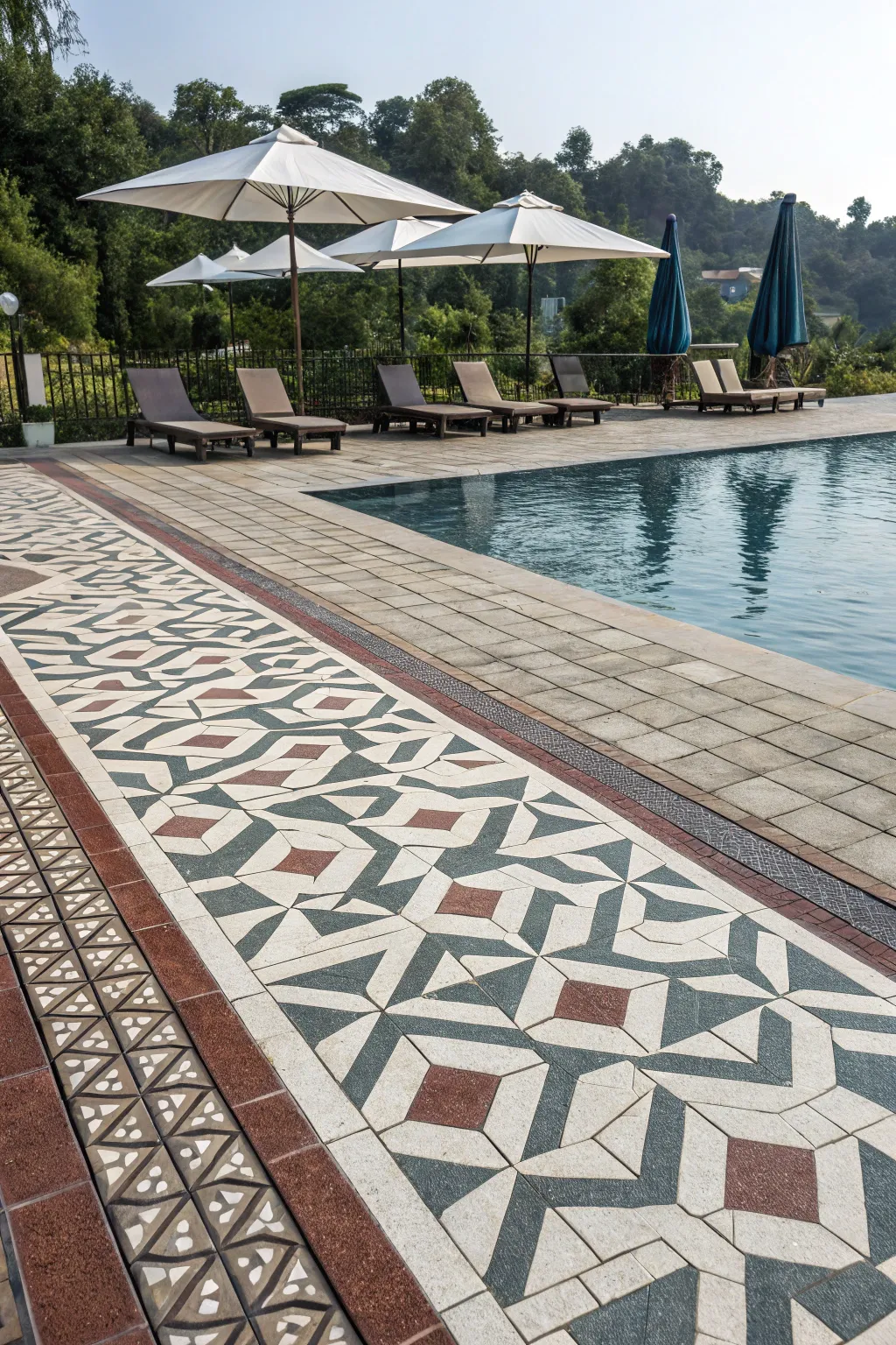 - Shaped Pattern Outdoor Pavers: Upgrade your pool zone with chic shaped pavers for a modern, artistic impression.