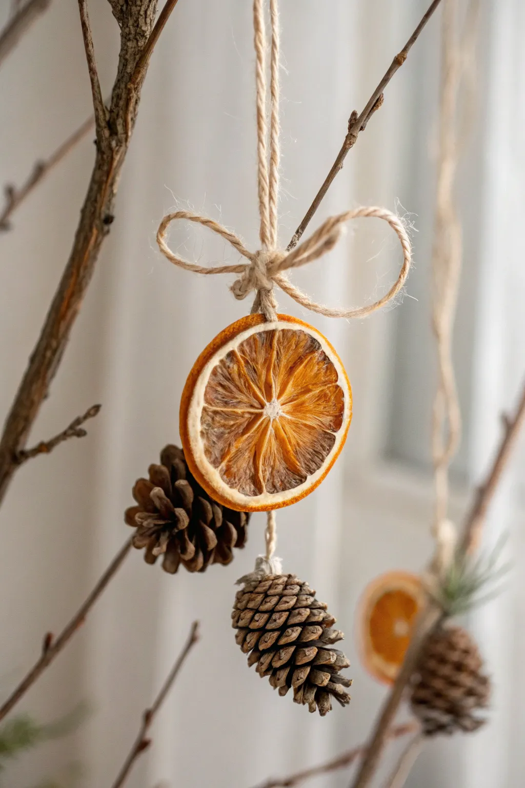 Incorporate elements from nature, like pinecones or dried orange slices, into your decorations. They provide a fresh, earthy feel to your festive decor.