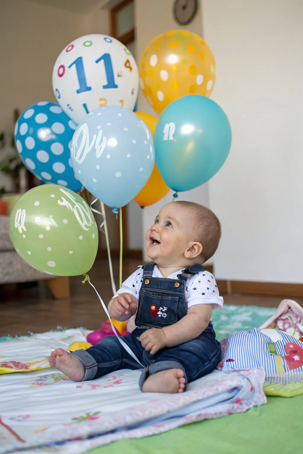 Rejoice in each month through aerostatic spheres corresponding to your baby’s chronological age. I am particularly enamored with witnessing the exhilaration in my baby’s gaze amidst vibrant aerostatic spheres.
