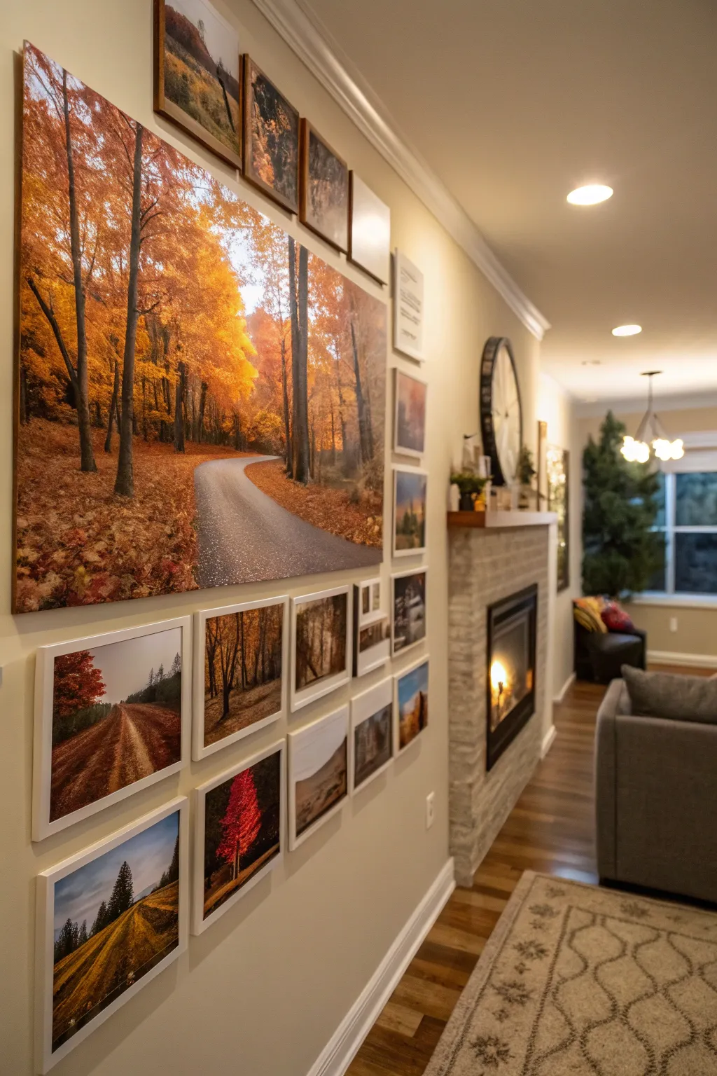 For the outdoor enthusiasts, design a nature-inspired display using pictures of landscapes and wildlife. This brings a serene and calming element to your decor. I often combine these with botanical prints for a truly immersive experience.