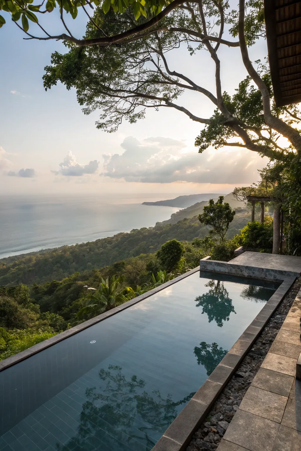 A Zen-inspired pool area with minimalistic design promotes relaxation and peace.