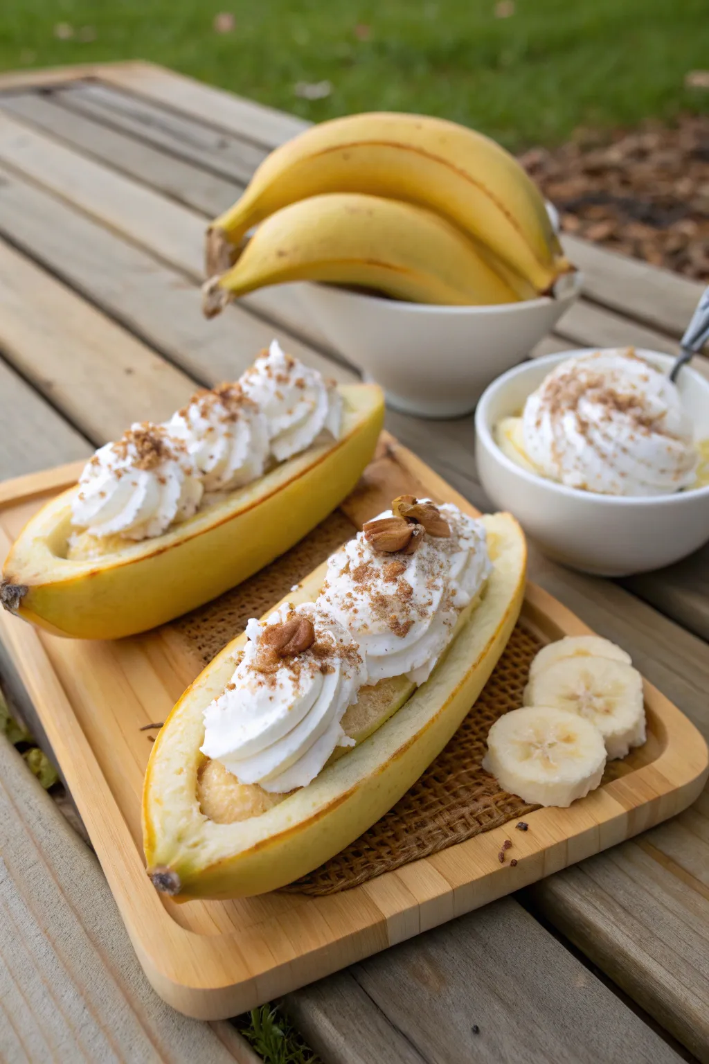 For an environmentally conscious approach, present your banana pudding inside emptied banana peels. It’s a delightful and sustainable choice that always receives positive feedback from guests.