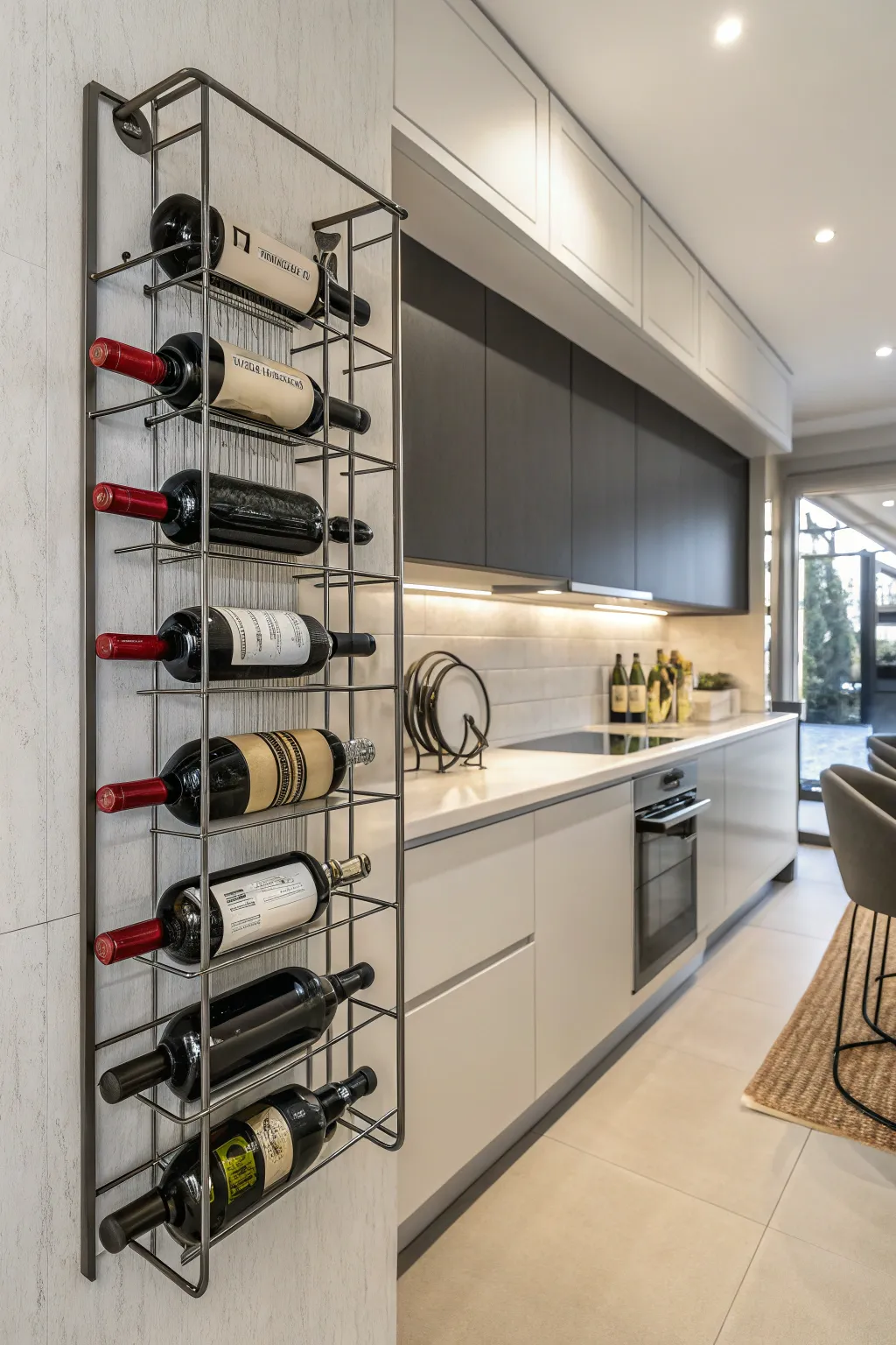 - Upright Bottle Cradle: Utilize upright space with a contemporary bottle cradle that fits any décor.