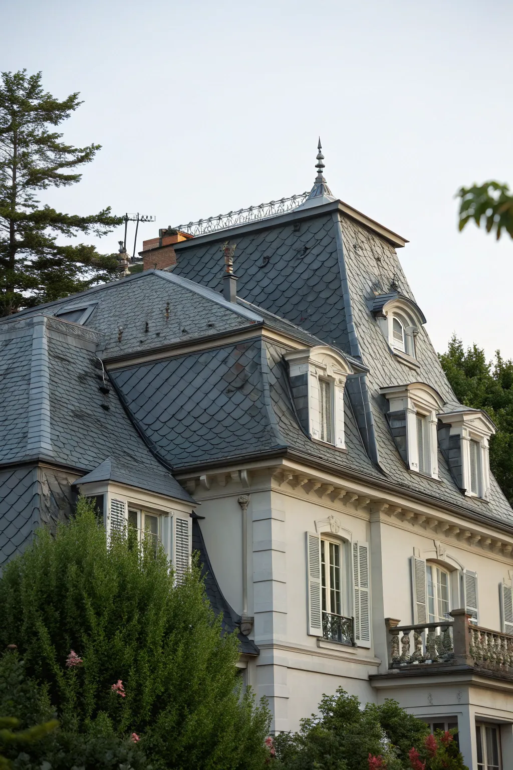Uniting diverse roofing materials can introduce depth and intrigue to your mansard roof. I’ve come to understand that a blend of textures can fashion a distinct and visually appealing facade.