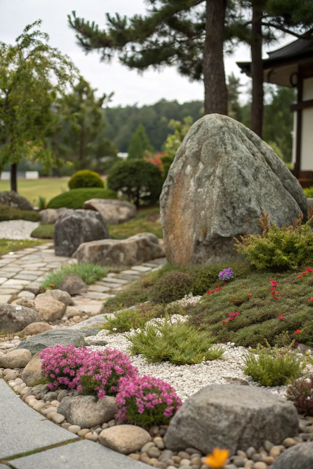 Adopt an understated design incorporating stones and straightforward plant placements for an inherently graceful garden. This aesthetic resonates with those valuing subtle sophistication.