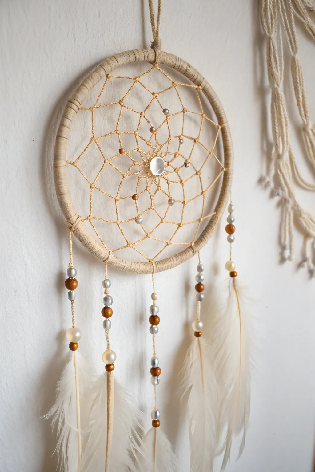 Incorporate a constellation pattern into a dream net using threads and beads. This is not only visually appealing but also introduces a personal touch to your bedroom décor. It feels like you’re weaving a piece of the night sky into your dreams.
