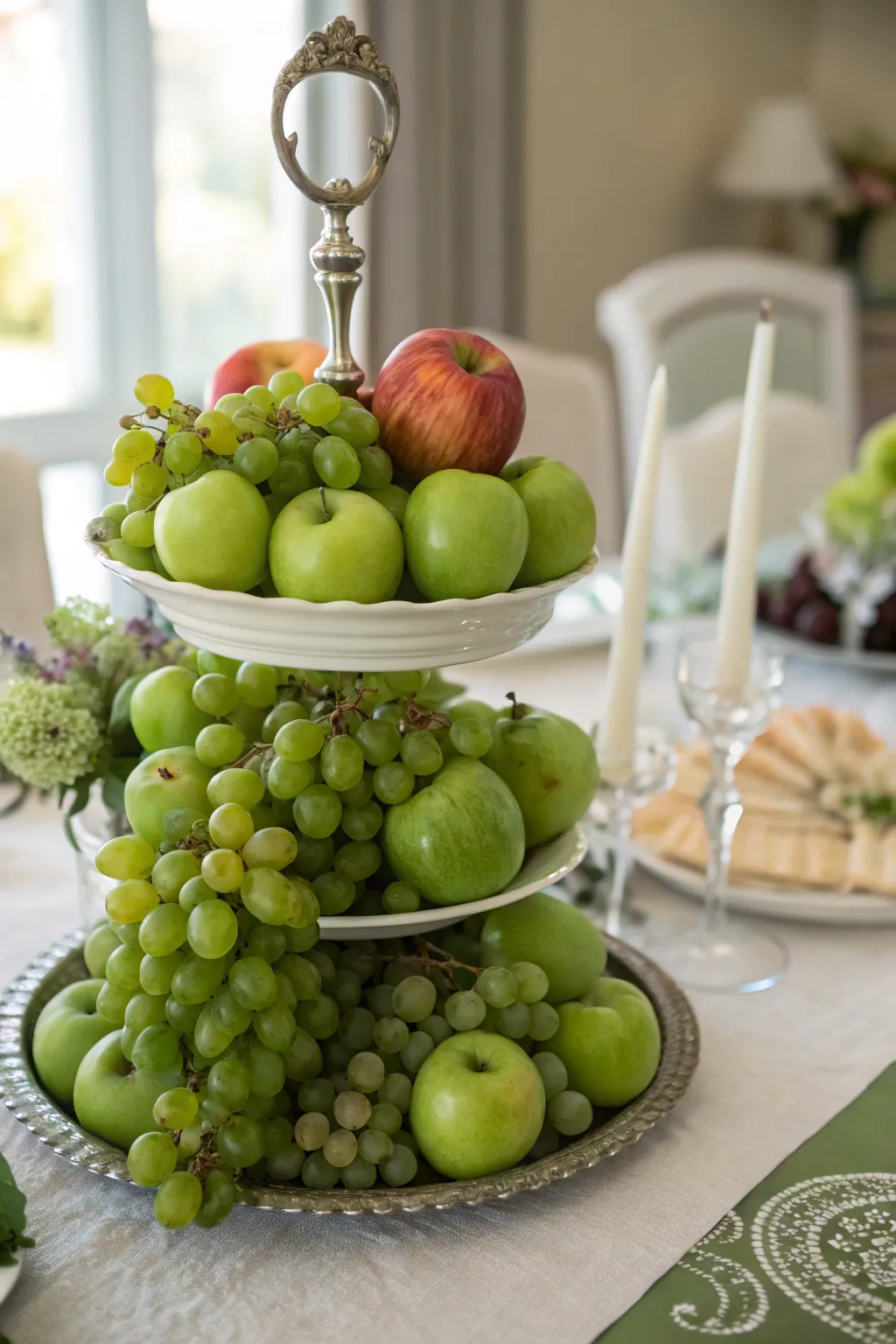 Exhibit seasonal emerald fruits such as grapes or apples as a segment of your ornamentation. This contributes a revitalizing and consumable detail that attendees will adore.