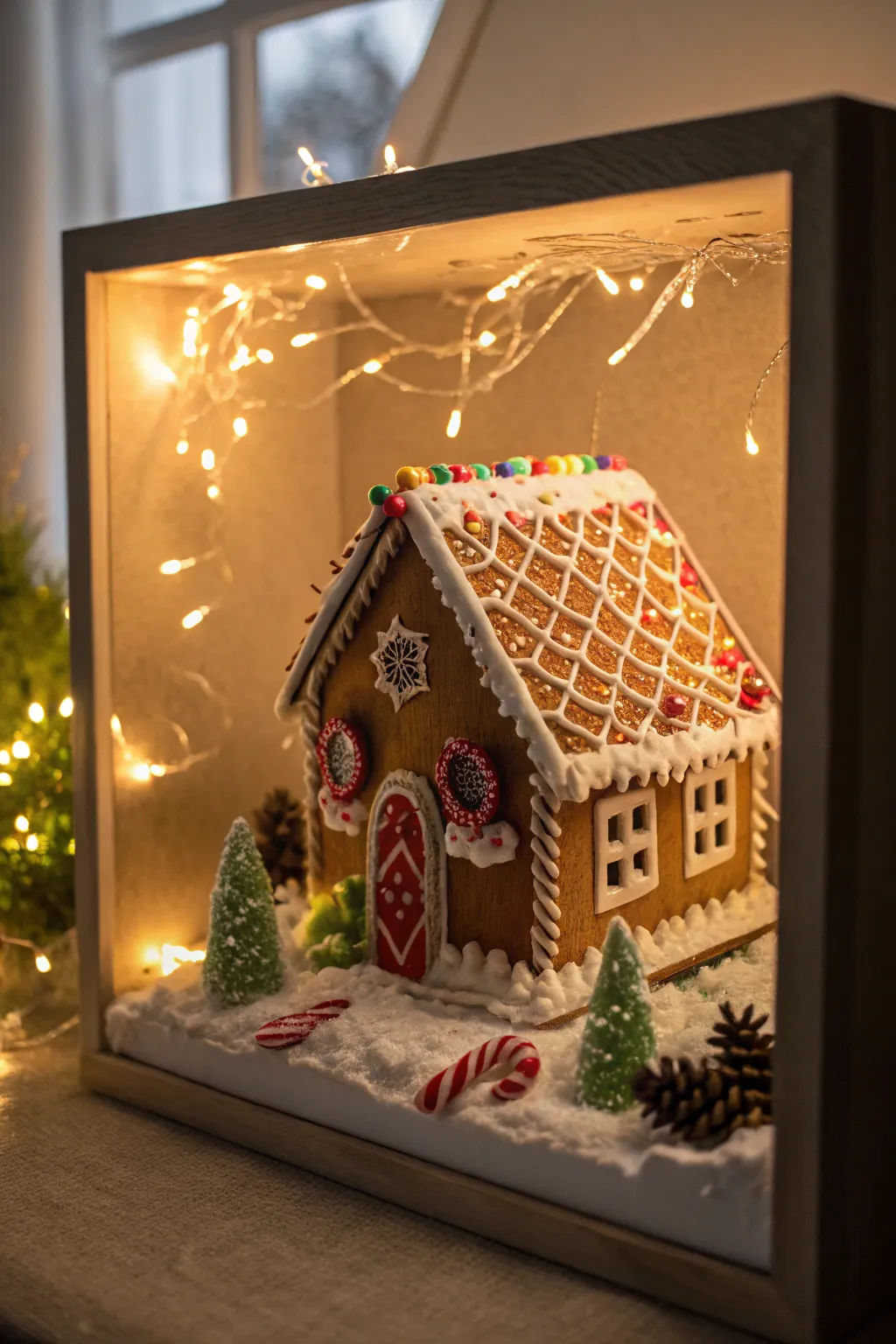 Usher a classic element into your diorama through a miniature gingerbread abode panorama. Employ warm lights to accentuate the candy and frosting minutiae. It’s a sweet and nostalgic addition that’s guaranteed to gratify both youths and grown-ups.