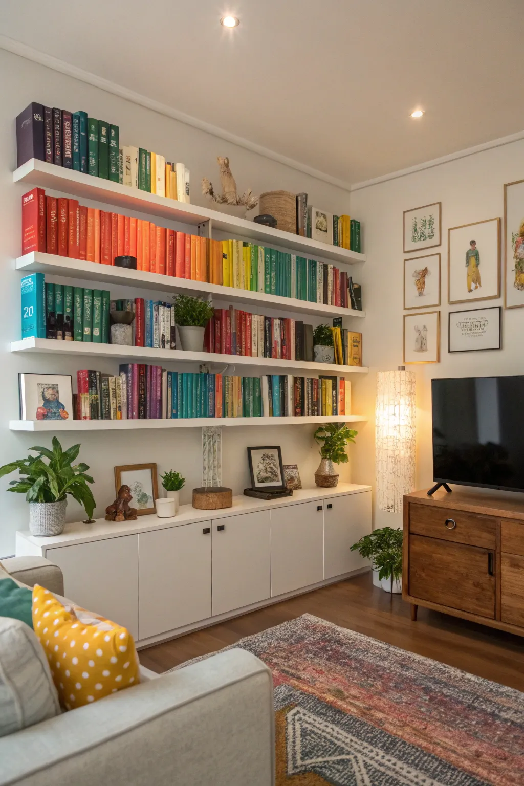 Transform a section of your living space into a cozy literary nook with shelving brimming with books. I adore curling up with a captivating book in my specially curated space.