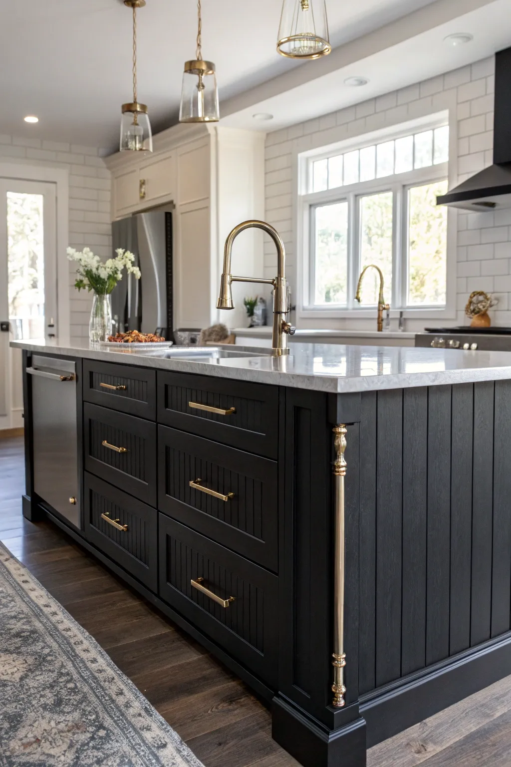 - Burnished Gold Kitchen Hardware: Add a refined burnished gold hardware to complete the elegant style of your kitchen island.