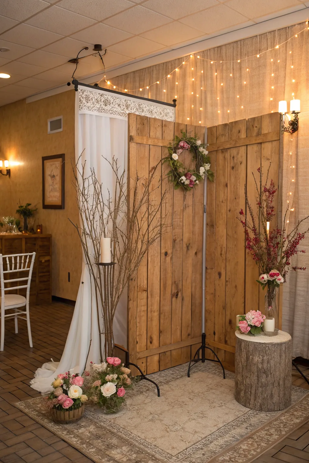 Imbue a sense of coziness with natural wood details, like a charming wooden backdrop frame. This introduces an organic vibe, creating an intimate ambiance ideal for close gatherings.