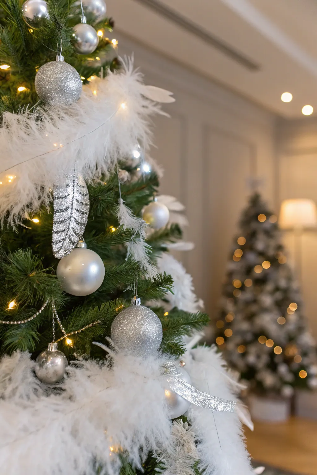 - White Feather Tree Crown: Top your tree with this feather crown, crafting an impressive focal point for your decorations.