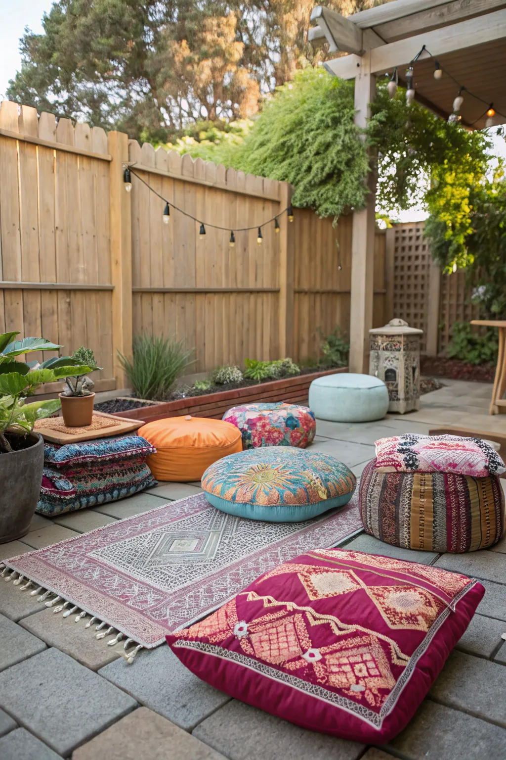 - Bohemian Ground Cushions: Introduce vibrant color and comfort to your patio with fashionable bohemian ground cushions.