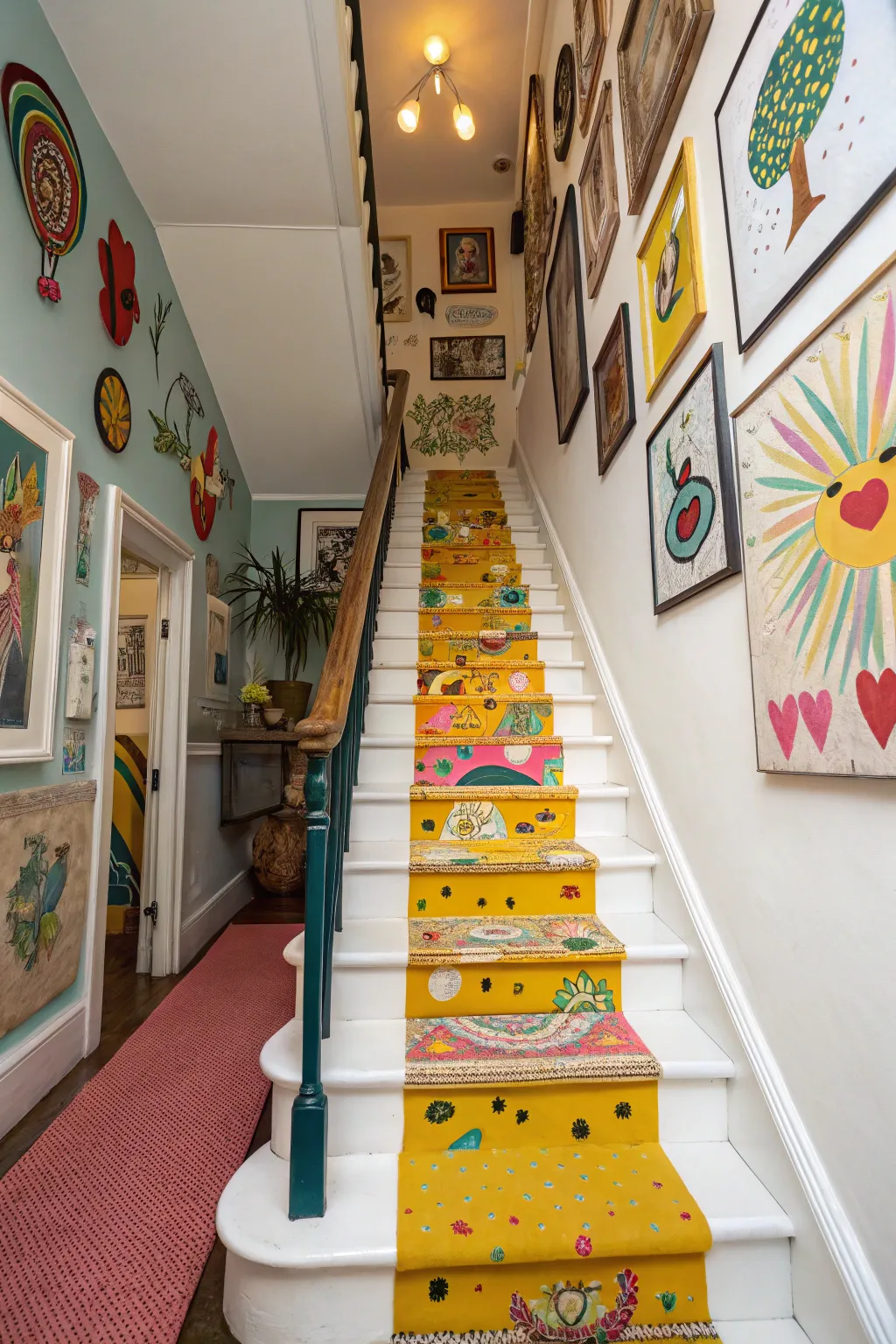 Incorporate a whimsical dimension through playful staircase ornamentation.
