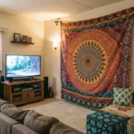 - Patterned Textile Rug: Lift your room’s aesthetics through a chic rug presenting refined geometric patterns.