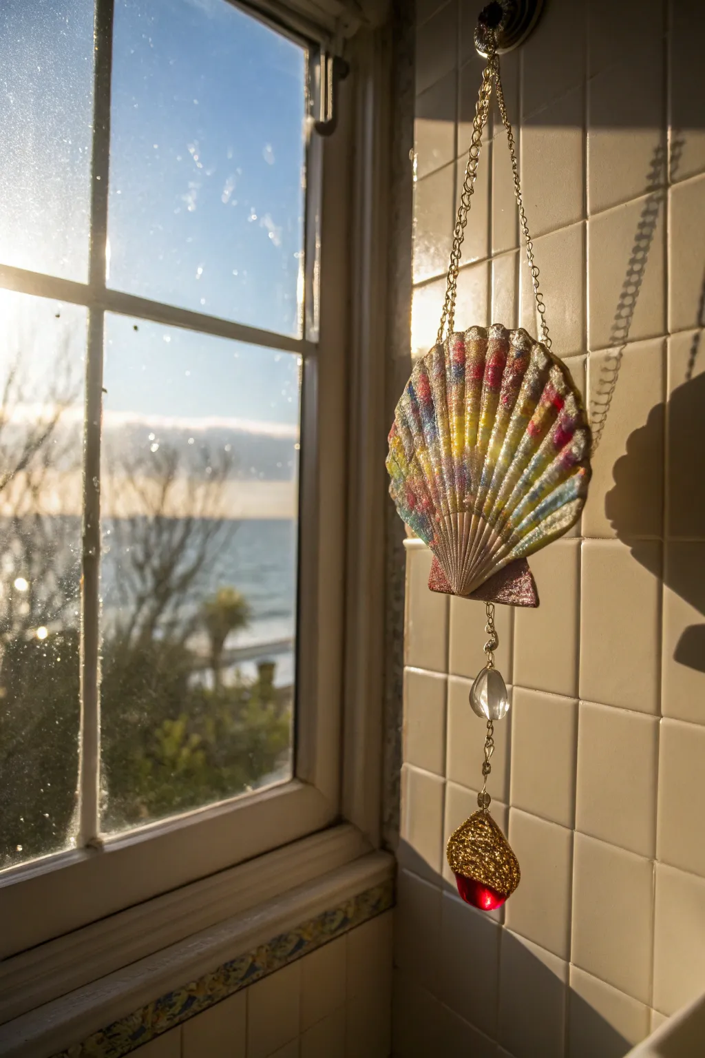 Incorporate seashells for a coastal touch that evokes the sea’s serenity. These light catchers are a favorite in my bathroom, creating a spa-like environment.