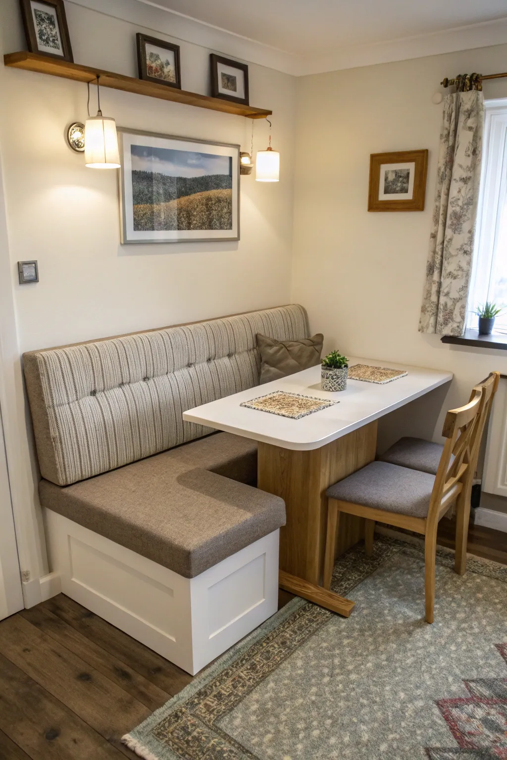 - Fabric Corner Bench: Elevate your eating nook with a cozy fabric bench for added comfort and refinement.