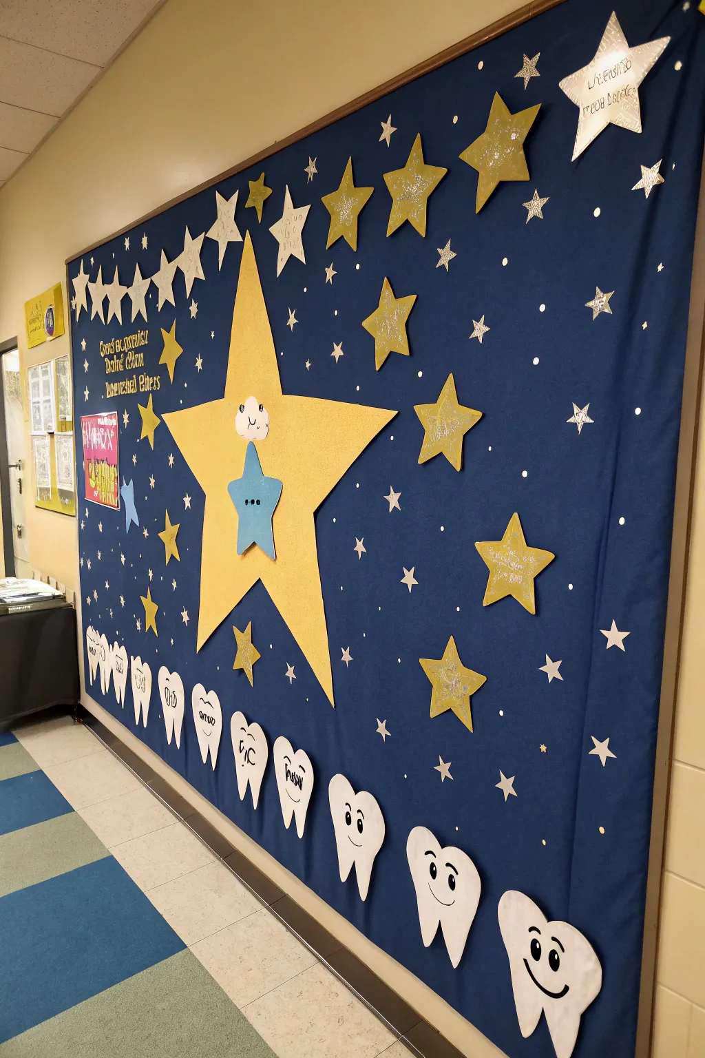 Devise a starry sky where each lost tooth becomes a shining star. This dreamy notion adds a hint of magic to your bulletin board.