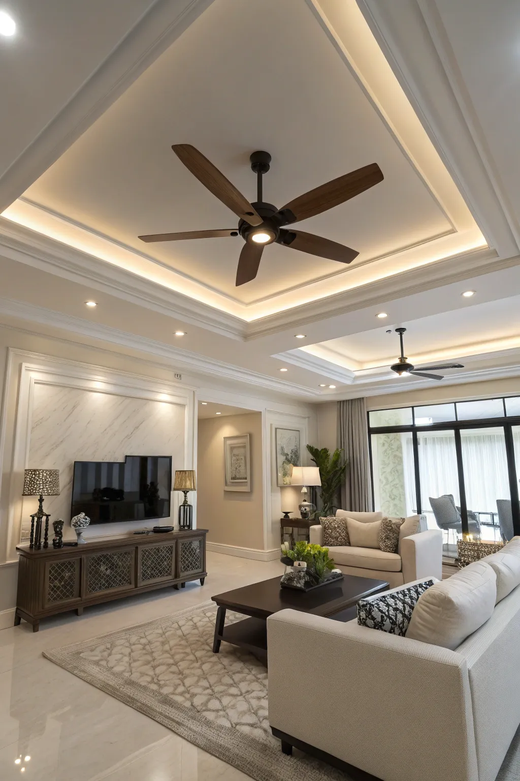 - Modern Fan with Light: Add an air fan with stylish lighting to your tray ceiling.