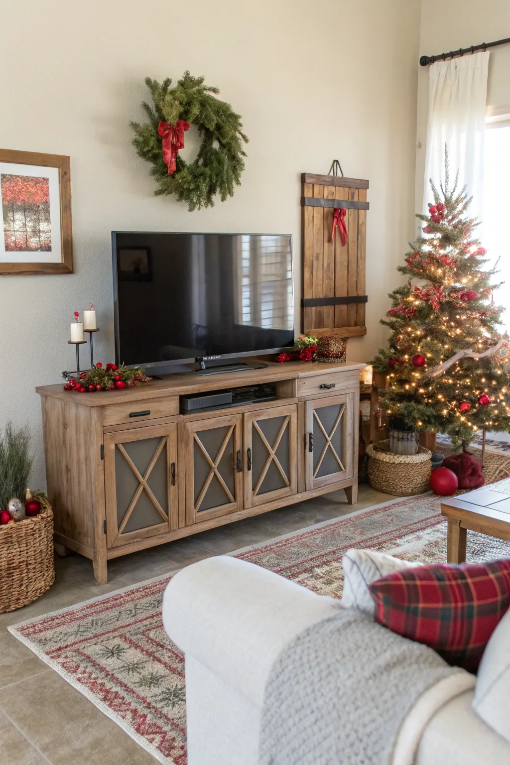 - Festive Seasonal Garland: Adorn your TV stand with celebratory garlands for a warm, seasonal touch during the holidays.
