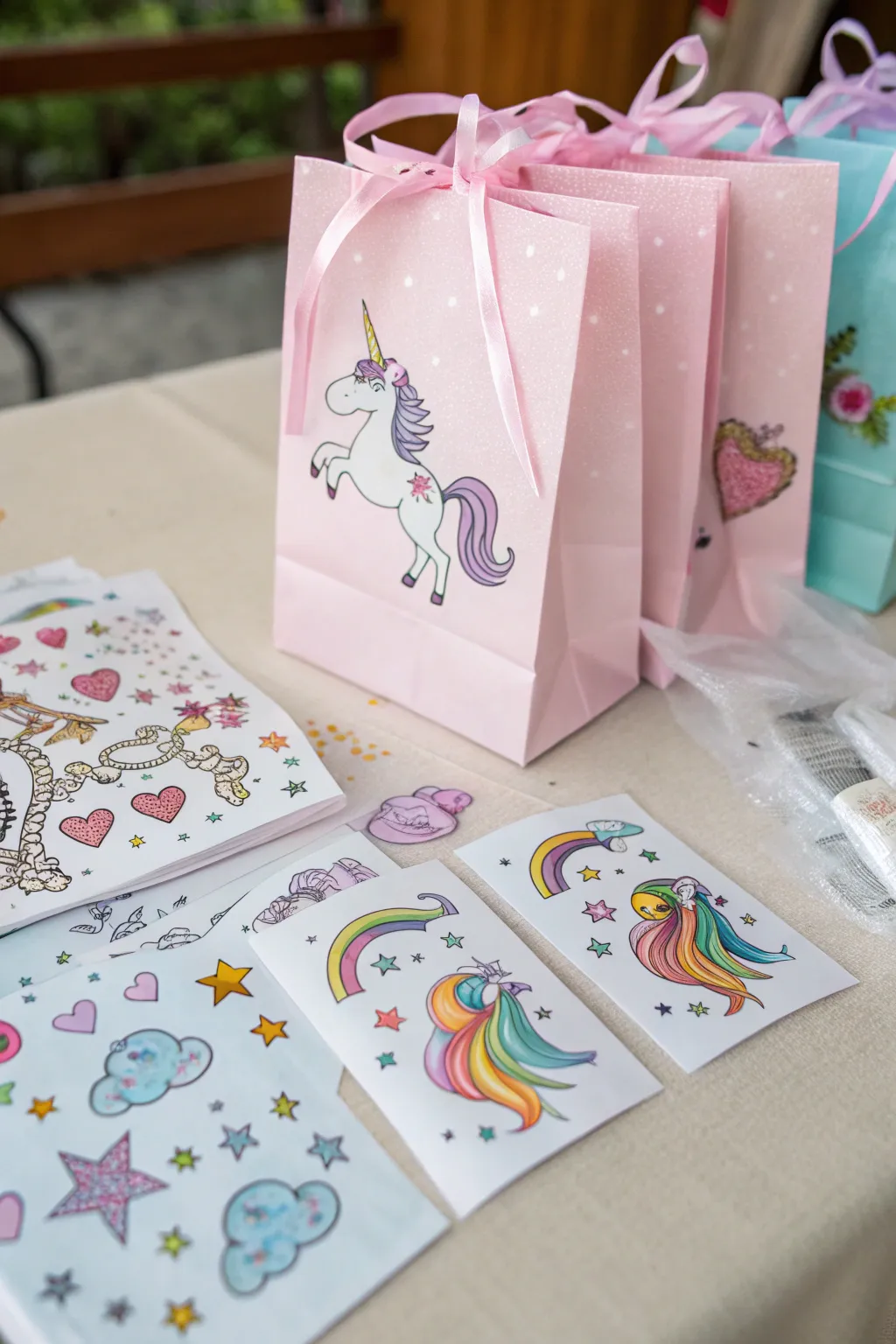 • Personalized Unicorn Decals: Create memorable favor bags using customizable unicorn decals for added personalization.