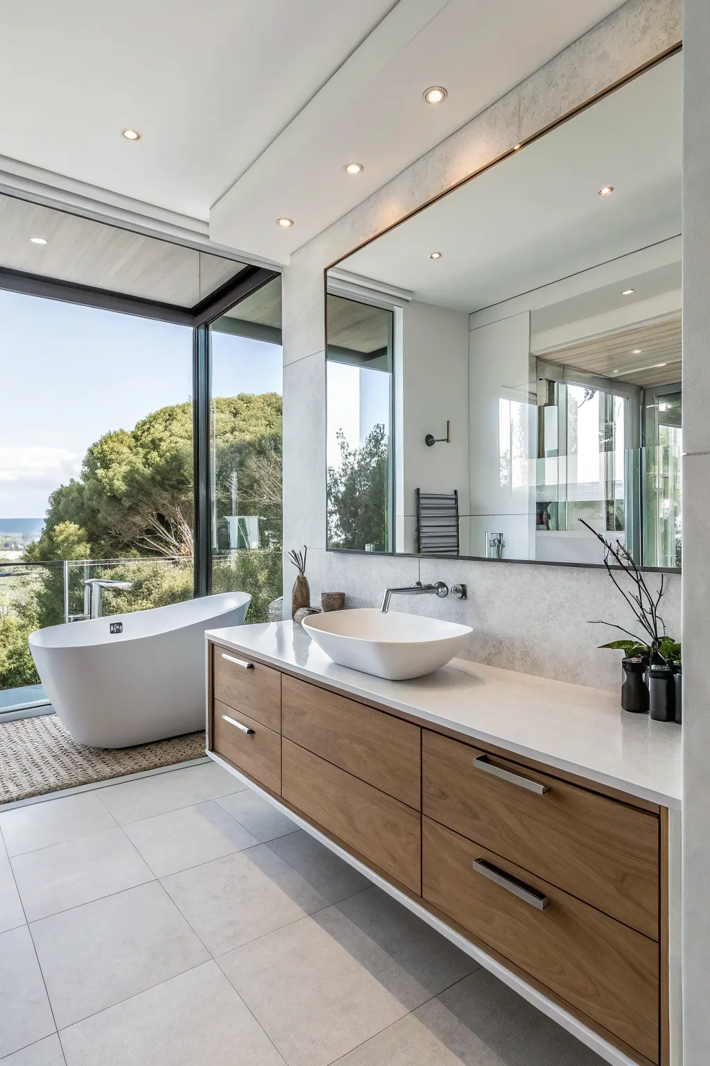 - Modern LED Mirror: Illuminate your bathroom with a sleek LED mirror, the quintessential element for achieving that modern flair.