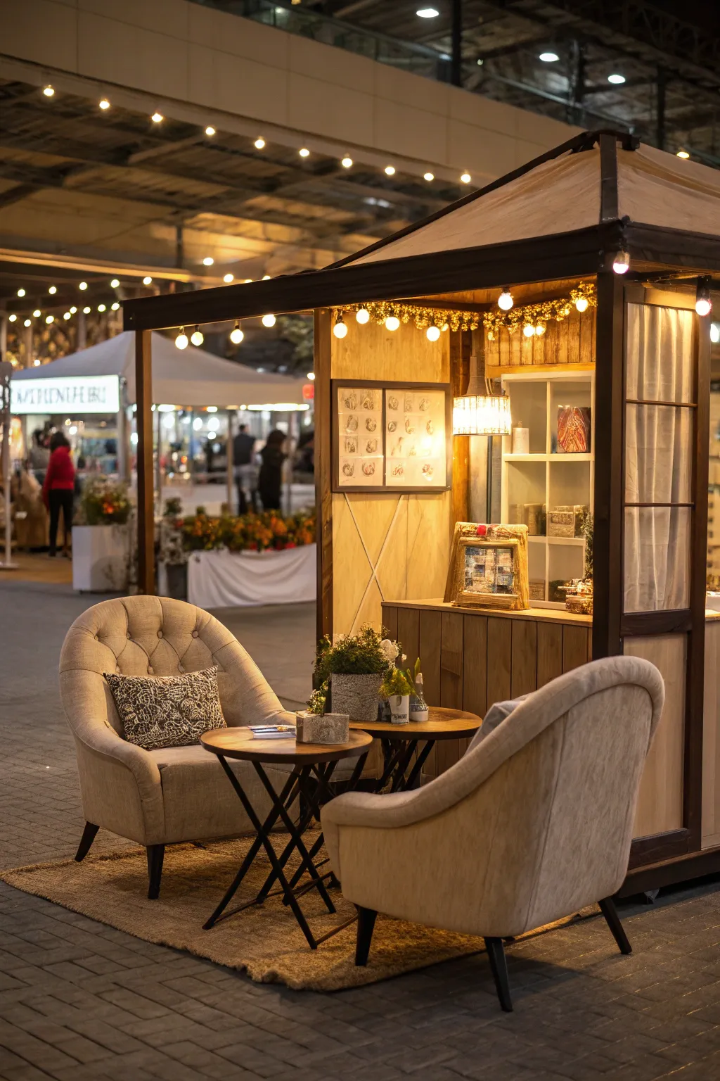 Encourage guests to stay longer by providing comfortable seating. A snug nook furnished with soft chairs can transform your booth into a delightful refuge.