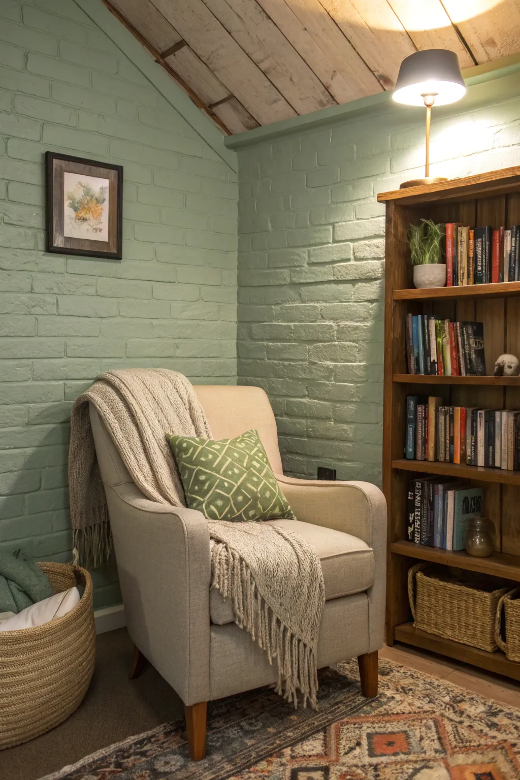 Revamp a cozy spot using a soft shade like gentle green or light cerulean on your brick wall. I truly adore the calming vibe it brings to my quiet space.