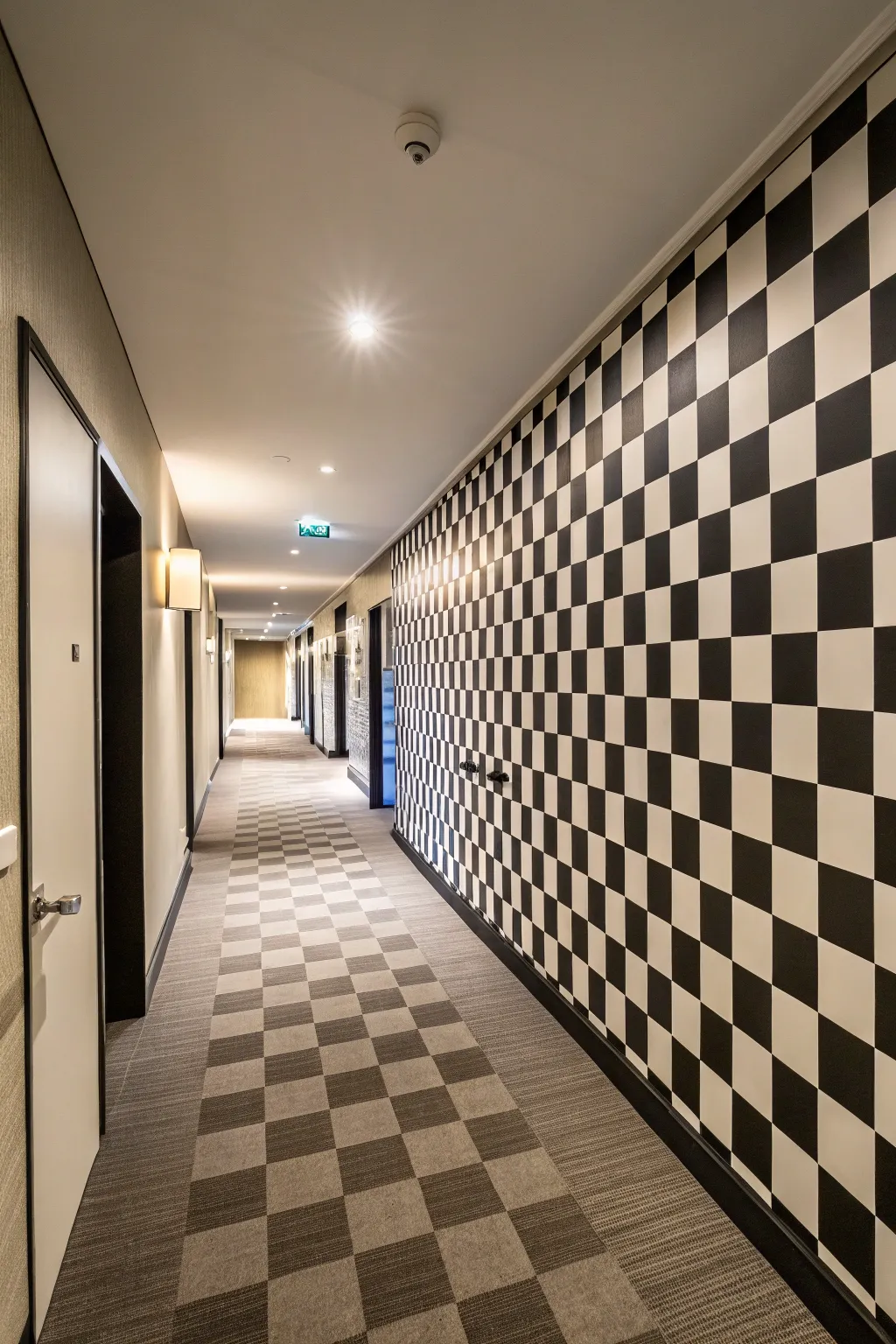 • Checkerboard Pattern Wallpaper: Transform your hallway with this eye-catching wallpaper, delivering timeless sophistication to any space.