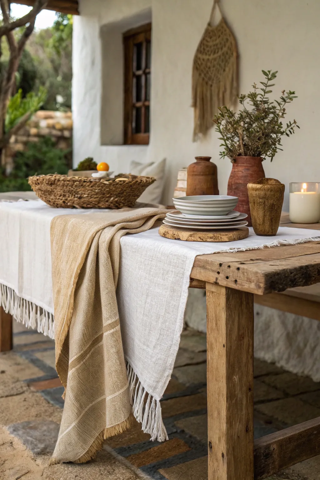 Consolidate varied textiles such as linen and hessian to achieve a rich texture. This approach excels at incorporating layers and depth into the table blueprint.