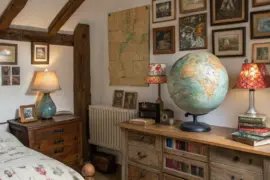 - Vintage Golden Desk Illumination: Illuminate your bedroom using a vintage golden lamp for an elegant, ageless appeal.